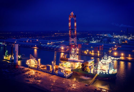 这些单桩正由离岸海洋工程公司GeoSea安装,该公司使用能够一次运载四个单桩的安装船Innovation。