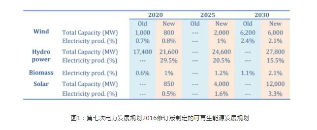 图1:第七次电力发展规划2016修订版制定的可再生能源发展规划
