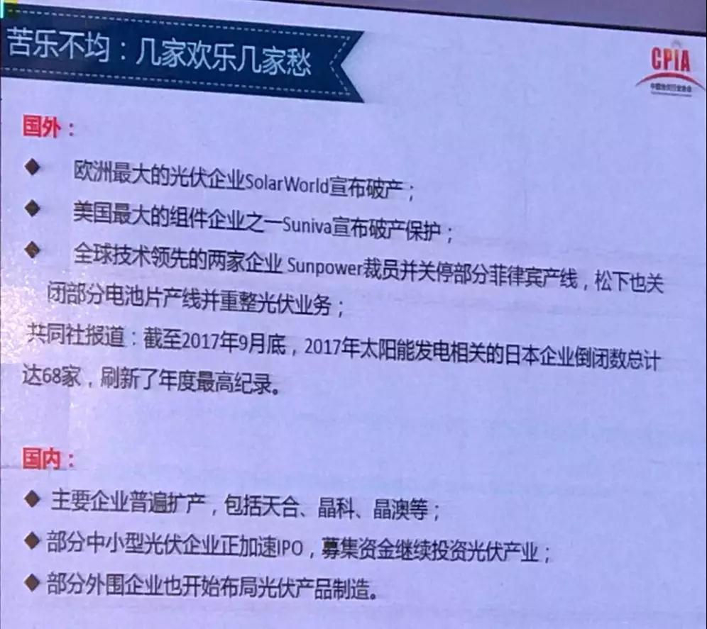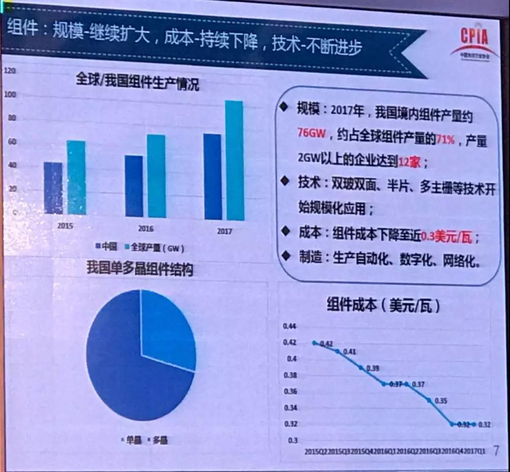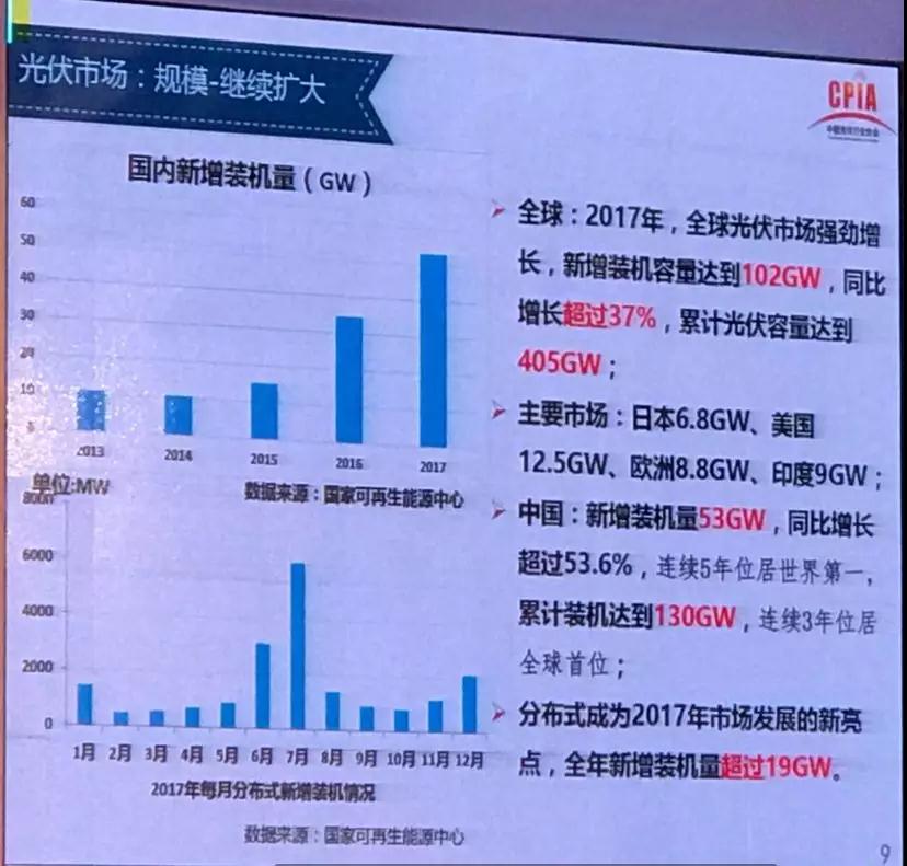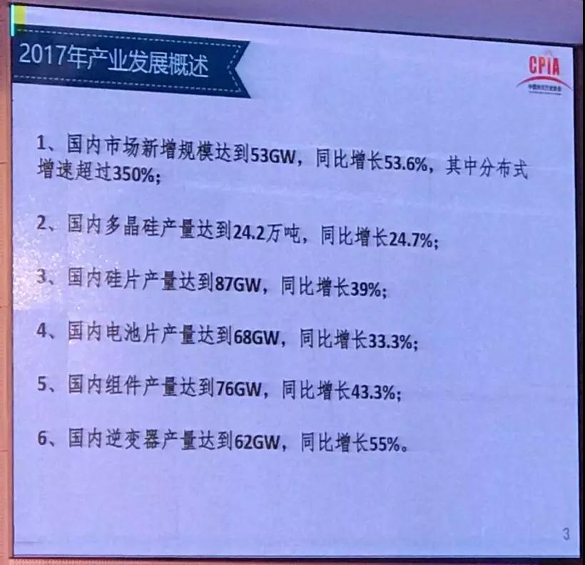 行业2017年发展回顾与2018年展望研讨会在京如期举行。会上,中国光伏行业协会副理事长兼秘书长王勃华作了《我国光伏产业发展情况——2017年回顾与2018年展望》的报告。汇报如下: