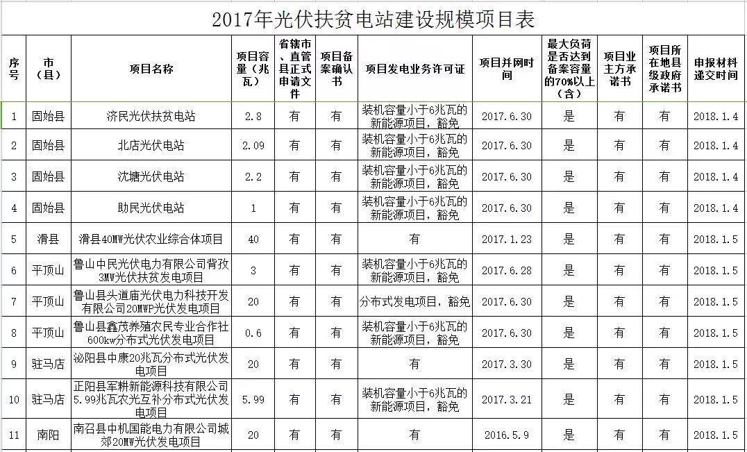 河南发改委正式公布2017年光伏扶贫电站建设规模项目名单