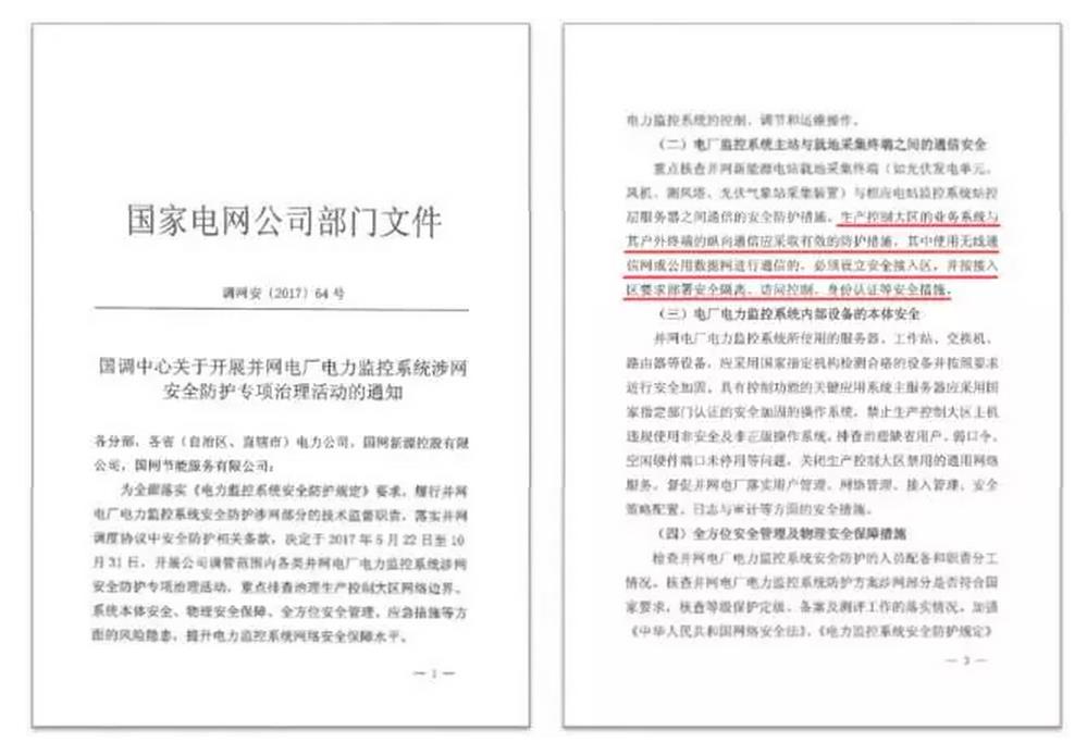 2017年5月22日,国家电网正式印发了《国调中心关于开展并网电厂电力监控系统涉网安全防护专项治理活动的通知》调网安[2017]64号文件(简称“64号文”)明确规定只要按照要求做好安全隔离措施,无线通信可以应用于电力行业。原文如下:生产控制大区的业务系统与其户外终端的纵向通信应采取有效的防护措施,其中使用无线通信网或公用数据网进行通信的,必须设立安全接入区,并按接入区要求部署安全隔离、访问控制、身份认证等安全措施。