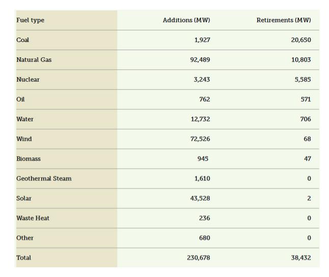 根据美国联邦能源监管委员会FERC刚刚公布的能源基础设施报告称,到2020年底,美国公共电力企业规模型风电和太阳能发电容量预计将新增115,984MW。
