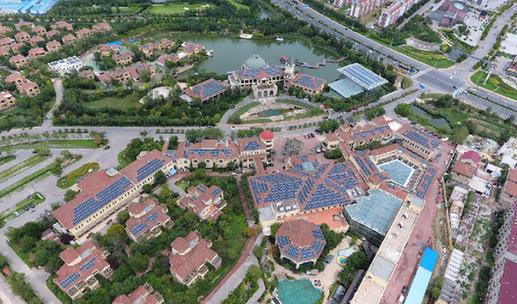 李福泉进一步表示:“能源新城后期建设会继续选用隆基乐叶单晶硅PERC组件。单晶组件除发电效率高之外,外形美观。通过航拍酒店屋顶照片来看,分布式光伏与酒店屋顶组合成为一道亮丽的风景线,并计划把分布式光伏电站发展为酒店的特色产业之一,以绿色能源助力绿色酒店建设”。