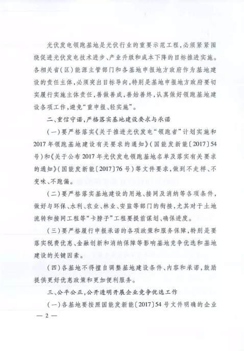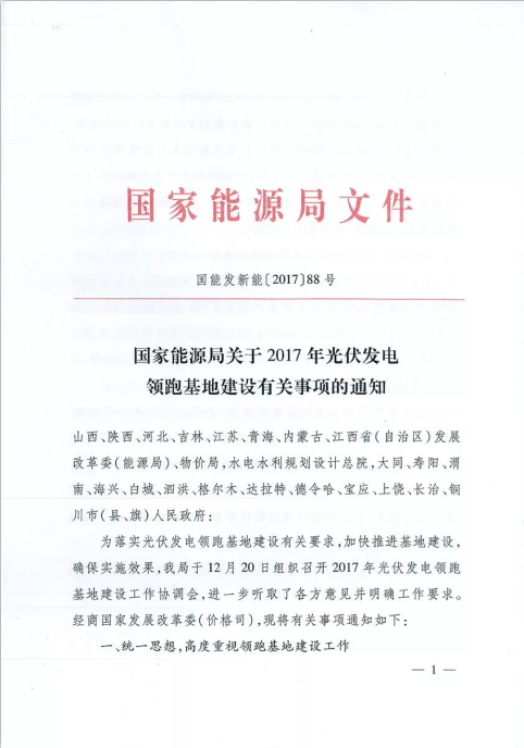 关于2017年光伏发电领跑基地建设有关事项的通知