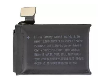 拆解电池时发现,Apple Watch Series 3搭配1.07 Whr(3.82V、279mAh)电池,采用锂离子聚合物材料,相比初代0.78Whr增长了32%,与此同时,电池扩容并没有让Apple Watch在其他功能上缩水,这是值得庆幸的事。