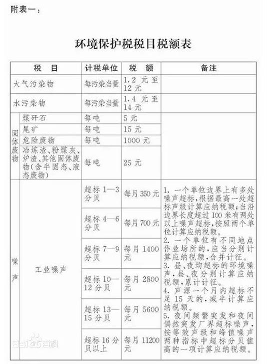 《中华人民共和国环境保护税法》附件内的环境保护税税目税额表