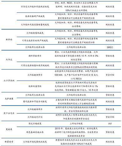 光伏行业成熟市场主要政策变化是对地面级电站政策扶持减少,尤其是补贴力度大幅减弱;分布式光伏政策未变或相对较小,并且政策逐渐向储能设备等光伏系统配套设施转移。