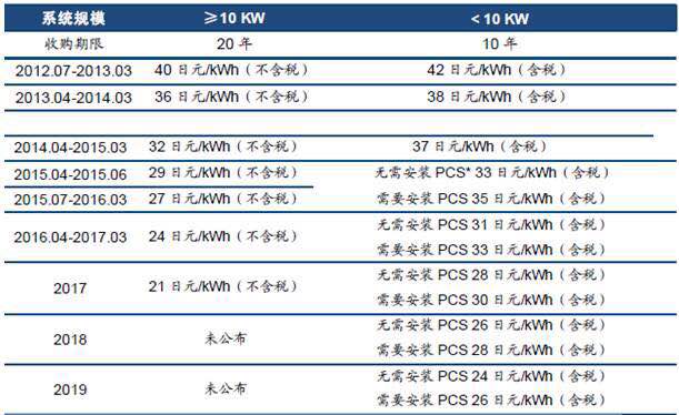 日本市场规模成长迅速的主要原因是FiT补贴政策,近年来FiT补贴的持续减少。日本经济产业省(METI)宣布《可再生能源特别措施法案》的法律修正案已通过内阁会议,于2017年4月1日起开始实施。