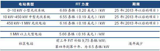 英国:2015年4月1日后,装机量大于5MW的地面安装光伏系统将不再有资格申请可再生能源义务证书(ROC)机制下的补贴;而2016年大幅调降64%的FiT补贴电价,可再生能源义务法案(RO)于2016年3月终止。相对而言,分布式光伏补贴减少力度更小,但减少趋势不改。根据柏林智库Thema1发布并获得欧洲企业联盟支持的一份报告《在即:无补贴英国太阳能》(InSight:Unsubsidised UK Solar),到2020年结束时,英国无补贴太阳能有望蓬勃发展。