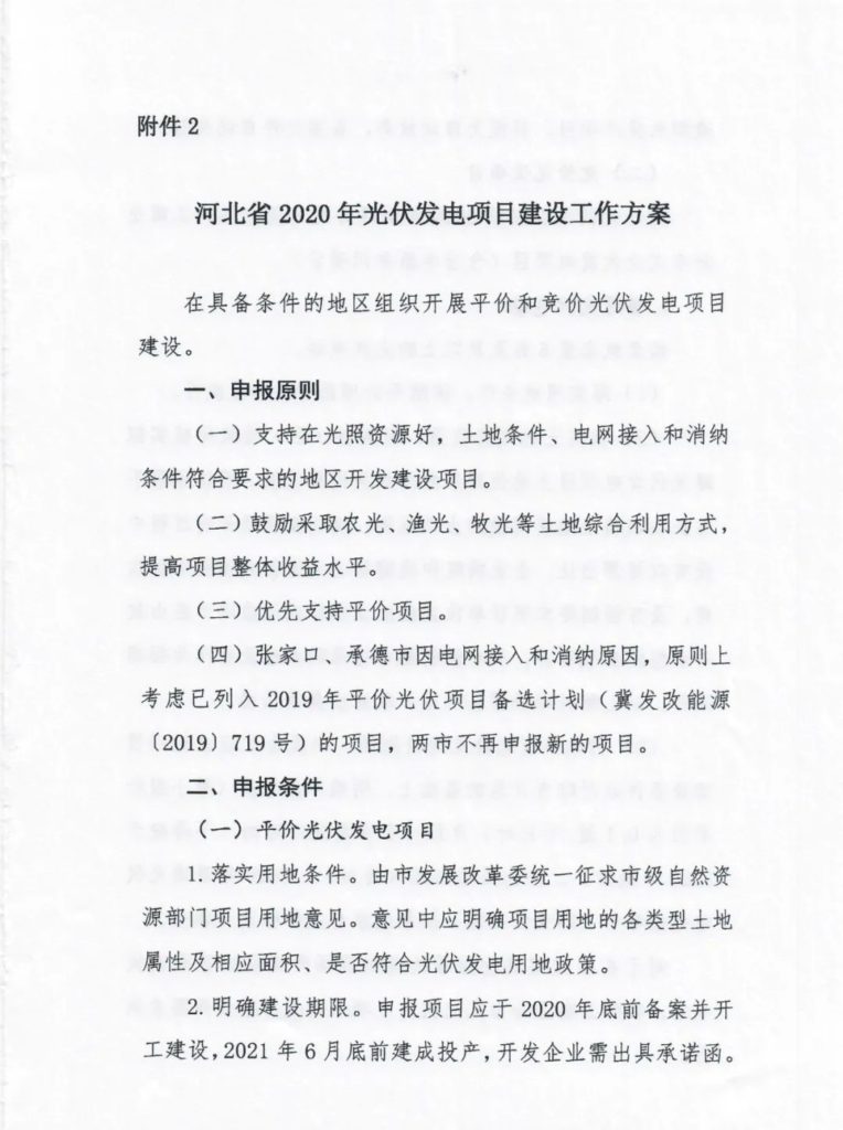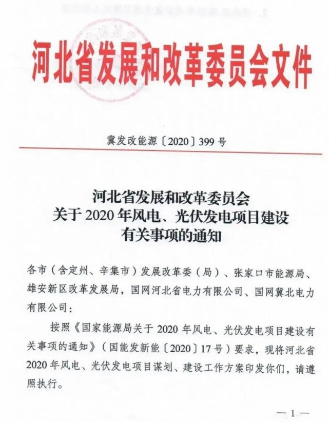河北省发改委发布《关于2020年风电、光伏发电项目建设有关事项的通知》,根据文件: