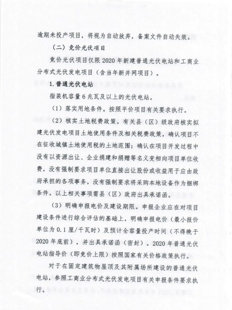 3.竞价光伏项目:仅限2020年新建普通光伏电站和工商业分布式光伏发电项目(含当年新并网项目);