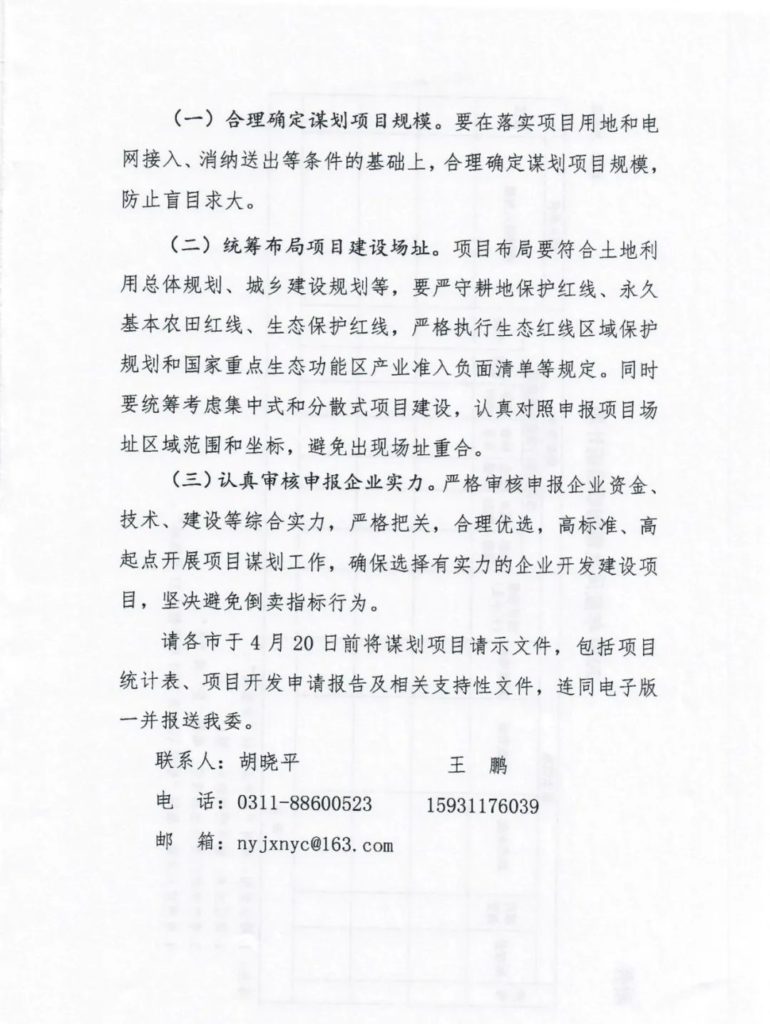 3.张家口、承德市因电网接入条件限制,暂不谋划新的项目;