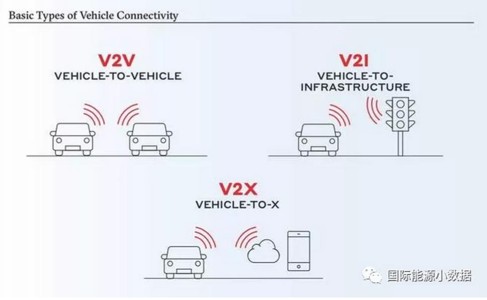 3)汽车互联(Connected vehicles):行驶中的各类车辆互相之间实时交换信息。