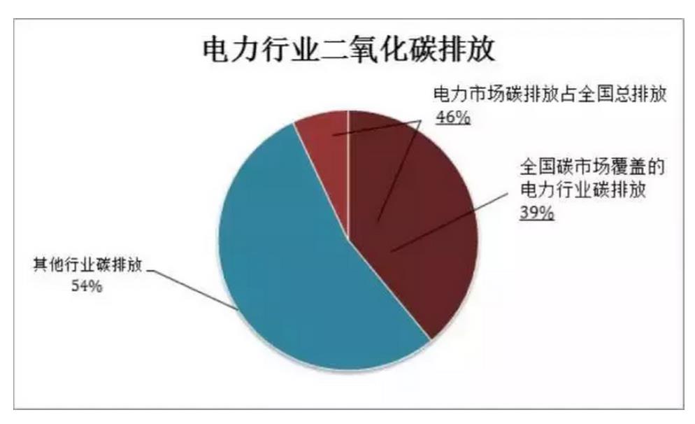 全国碳排放交易市场首批纳入的发电/供热行业,其二氧化碳排放量占中国二氧化碳排放总量的46%(详细数据请见文末表格)。中国碳论坛(ChinaCarbon Forum)称,电力行业将被纳入全国碳排放交易市场的二氧化碳排放总量预计为3500吨,占该行业排放总量的74%。由于该行业二氧化碳排放量在全国排放总量中占比较大,即便全国碳排放交易市场首批仅纳入发电/供热行业,碳市场覆盖的二氧化碳排放量将占到全国排放总量的39%。