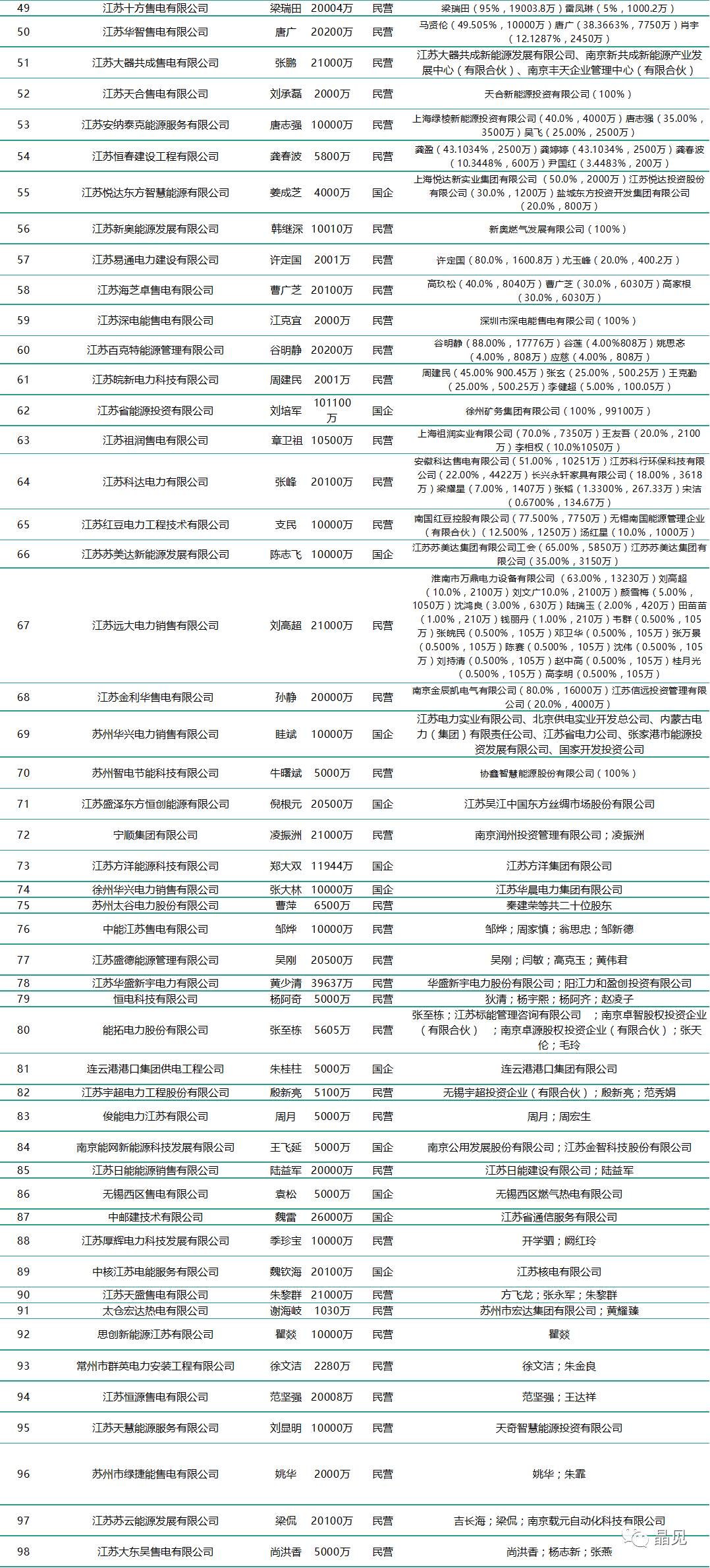 补充:以上名单中还少了一家江苏省能慧售电有限公司