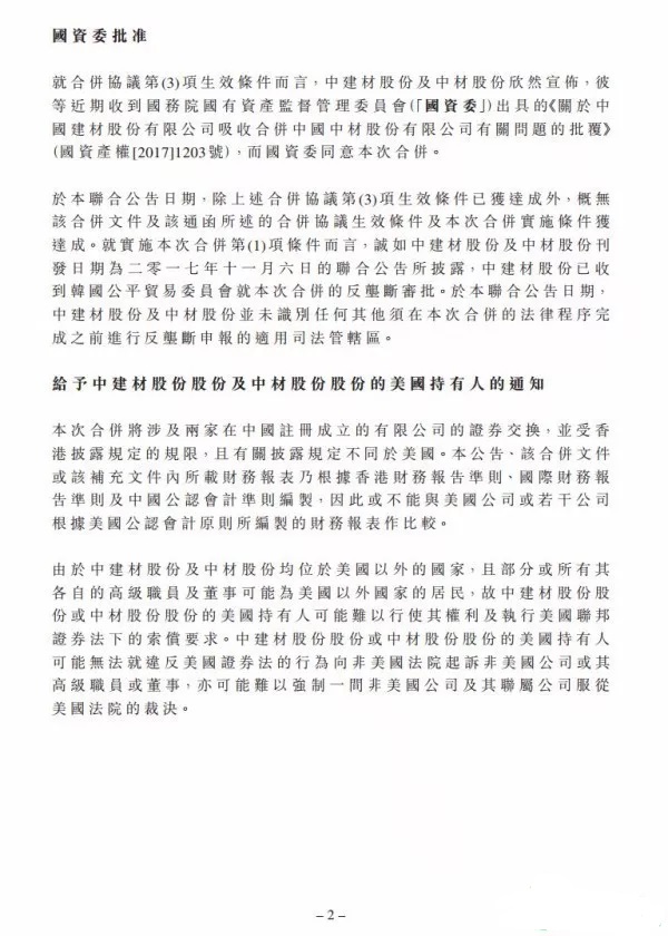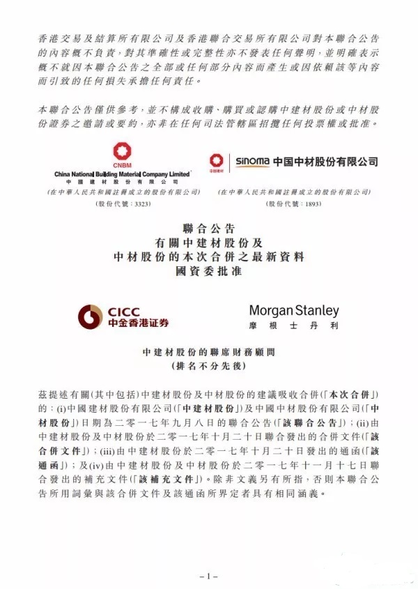 中国建材和中材股份在港交所发布联合公告,称近期收到国务院国资委出具的《关于中国建材股份有限公司合并中国中材股份有限公司有关问题的批复》,国资委同意本次合并。据公开资料,中国建材旗下子公司中复连众与中材股份旗下公司中材叶片合并后二者风电叶片总产能将达到16GW,2016年风机叶片整体装机量占中国市场份额的35.5%,占全球市场份额的15.2%,位居世界第一。