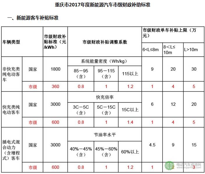 《关于重庆市2017年度新能源汽车推广应用财政补贴政策的通知》指出,按照国家关于新能源汽车地方配套补助不超过中央补助50%的要求,结合我市2017年度的推广应用目标,参照国内类似省市情况,确定我市市级财政补贴标准为中央补贴标准的46%以内,市、区(县)财政补贴(各级财政补贴总和)不得超过中央财政单车补贴额的50%。