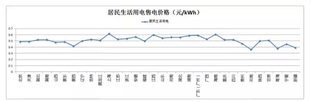 图:居民生活用电全国平均销售价格约为0.51元/kWh