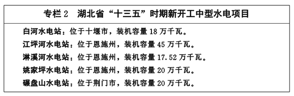5、统筹推进水电保护性开发。坚持生态优先,水电开发与移民致富、环境保护、水资源综合利用相协调的原则,统筹大中型与小型、干流与支流、常规水电厂与抽水蓄能电站开发,以流域综合效益最大化为目标,积极支持水电资源整合与综合开发。重点推进鄂西地区大中型水电开发,在汉江流域新建白河、碾盘山等水电站,在溇水流域新建江坪河和淋溪河水电站,在清江流域推进姚家坪水电站建设,开展葛洲坝水电站增容改造,新增水电装机容量150万千瓦左右。开展抽水蓄能电站规划调整工作,优选纳入调整规划的推荐站点。组织对生态环境造成严重影响的小水电进行整改。