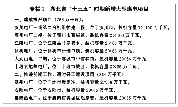 4、科学有序发展清洁火电。有序推进大型清洁高效煤电项目建设,积极贯彻落实国家化解煤电产能过剩风险的有关要求,结合省内实际需求,合理安排大型煤电项目建设投产时序,保障省内电力市场安全平稳运行。积极支持纳入规划的燃煤热电联产项目建设,认真落实国家热电联产管理有关规定,科学编制热电联产规划,鼓励规范建设背压式燃煤热电联产机组。支持在有条件的经济开发区、中心商务区、公共建筑或商业综合体等建设天然气分布式能源项目,在武汉、襄阳和宜昌“一主两副”中心城市及其他市(州)城区范围内适度布局燃气蒸汽联合循环热电联产项目。支持高炉煤气、余热余压余气发电项目建设。“十三五”期间,湖北省规划火电项目(含热电联产、燃机、余热发电等)1300万千瓦左右。