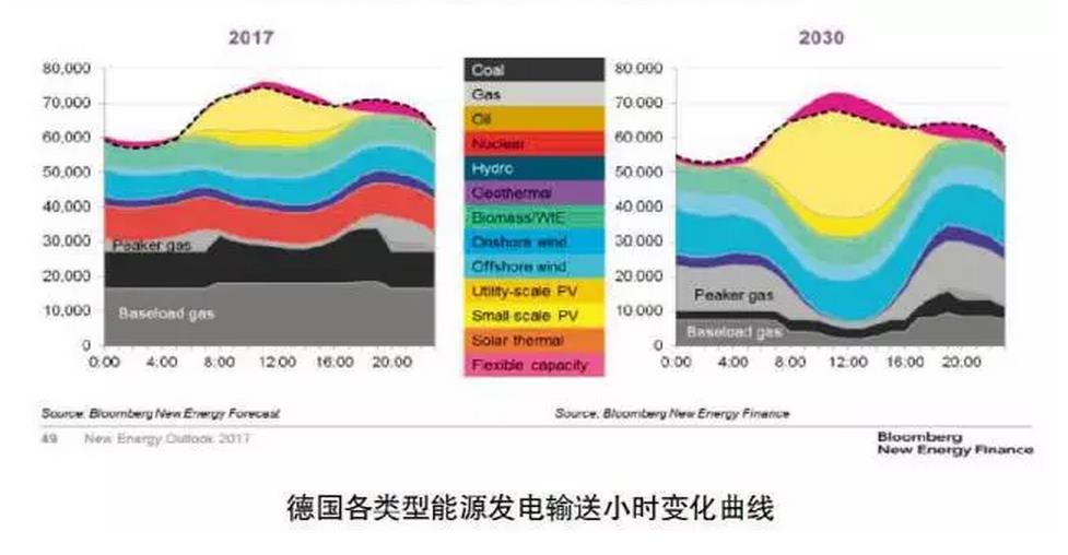 当然,这不仅关系到电动汽车的需求量,同时也关系到电动汽车充电装置。据统计,到2040年近半的电动汽车可以实现智能充电——利用日间电价低谷期进行充电。当可再生能源发电量富余时,尤其是到2040年,光伏发电量达到极值输出量时,可以利用智能充电来推进电动汽车的发展。这样,电动汽车的需求跟随电力供应的增长而加大,有助于平顺负荷曲线,更好地促使可再生能源并网。同样也可以有效支持光伏电站发展,否则它们将很难寻找到相应的电力需求。