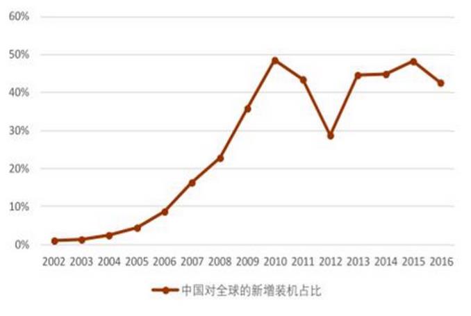2011 年和 2012 年,风电行业出现了并网消纳困难、弃风限电严重、质量事故频发等发展瓶颈,产业进行调整转型,新增装机同比有所下滑。而由于 2015 年抢装潮透支需求,2016 年新增装机同比下降了 24%。