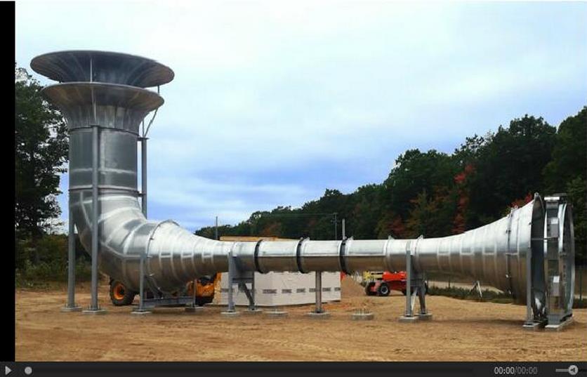 听起来很厉害的样子,但是原理却很简单:位于系统最上部的是集风口,就像一个朝天大喇叭,可以收集来自四面八方的风,不管是微风,还是90km风速的高风都可以穿过集风口进入系统内部,当遇到突然变窄的管道时,高速流动的风开始聚集并加速,最终推动涡轮机将风能转化为电能,尾部的扩散器再把风重归大自然。