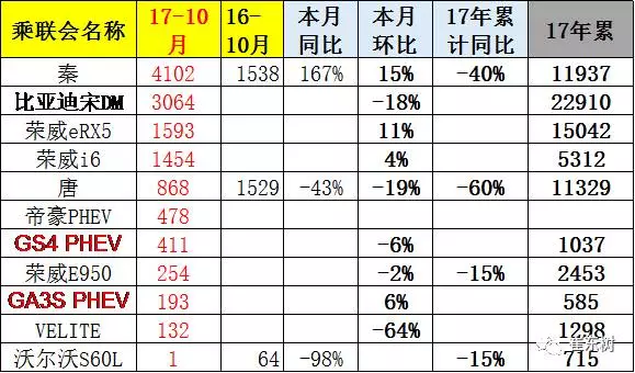 就单个车型看,纯电动领域,北汽EC系列、知豆D2、江淮IEV6S/E分别以11315辆、4502辆、2861辆分列冠亚季军;插电式乘用车领域,比亚迪秦以4102辆领跑,比亚迪宋DM以3064辆紧随其后,荣威eRX5以1593辆排名第三。