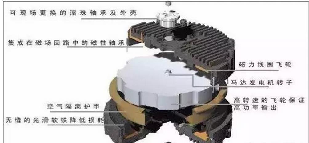 在一个飞轮储能系统中,电能用于将一个放在真空外壳内的转子即一个大质量的由固体材料制成的圆柱体加速(达几万转/分钟),从而将电能以动能形式储存起来(利用大转轮所储存的惯性能量)。