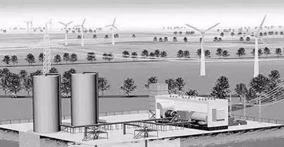 利用待弃掉的风电制氢,通过电解水,将水分解为氢气和氧气,从而获得氢。以后可直接用氢作为能量的载体,再将氢与二氧化碳反应成为合成天然气(甲烷),以合成天然气作为另一种二次能量载体。