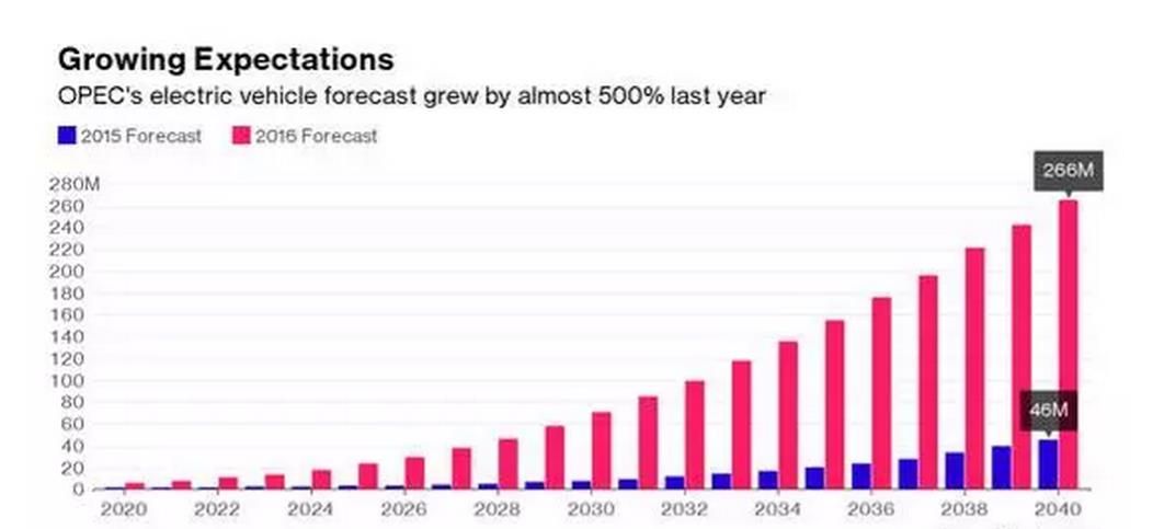 图示:2015与2016年全球电动汽车增长预期