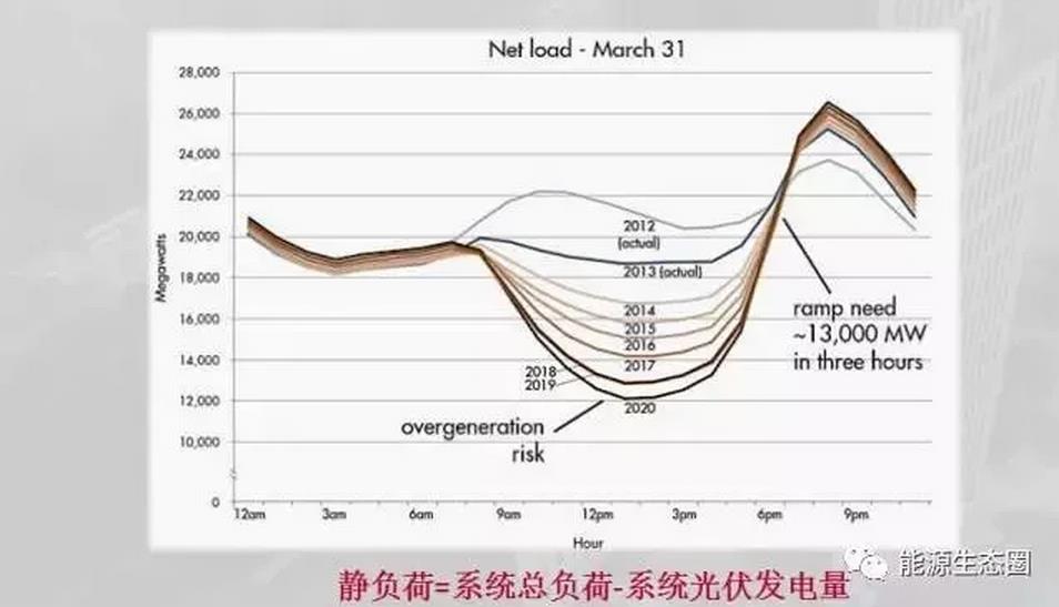 两个月前,加州有一个地方天然气泄露,因为加州很多的发电机发电厂是烧天然气的,天然气泄露就意味着可能当年的发电量不足,负荷每年都在增长,光伏每年都在增加,那根线已经越来越陡,本来可以供给的天然气供应不上,也发不了电,那就非常糟糕,所以当时南加州电力公司紧急招标100兆瓦的储能系统,当时特斯拉中标80兆瓦,也有中国的公司中了这个标,当然是小部分的标。
