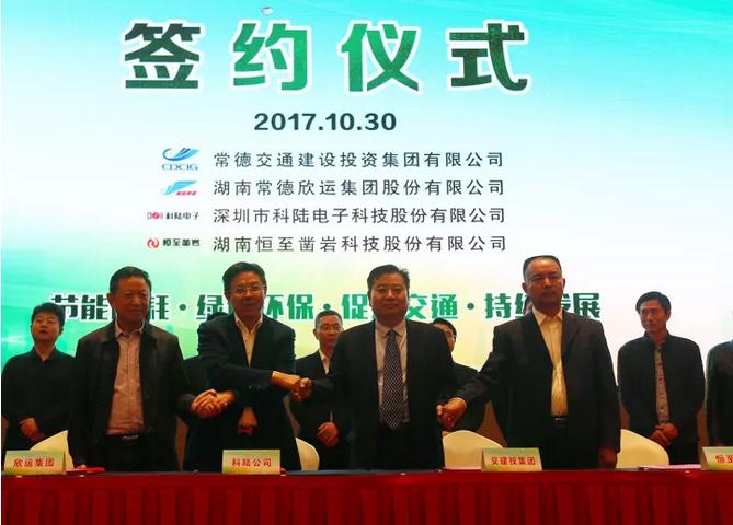 10月30日,常德市交建投集团、欣运集团、科陆电子、恒至公司四方共同签订湖南乐善新能源有限公司增资扩股协议,引进科陆电子、恒至公司参与常德市充电基础设施建设。常德市委常委、常务副市长陈恢清出席签约仪式并讲话。