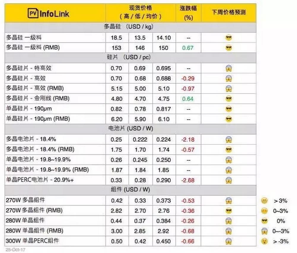 本周单、多晶硅片、电池片、组件价格下降明显!