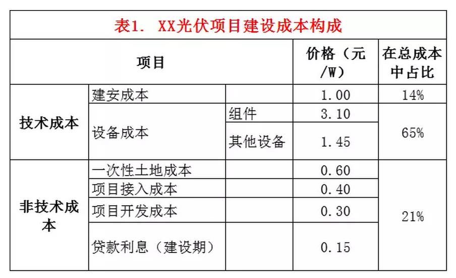 表1为年内建设的某光伏发电工程的成本构成,用以说明非技术降本的潜力和方向。需要说明的是,表中的提法和数据并不十分准确,仅为说明问题。