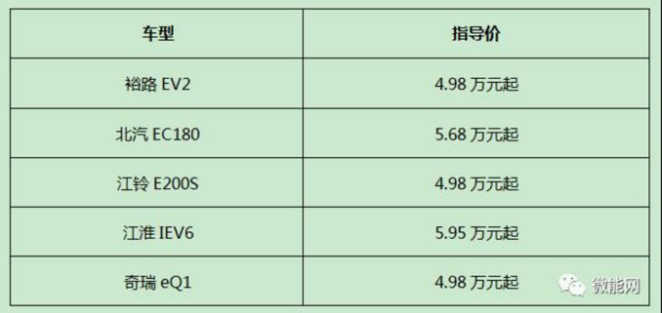 数据显示,今年1-8月,国内A00级别新能源车共销售11.4万辆,占新能源车总销量的45%。裕路EV2、北汽EC180、江铃E200S、江淮IEV6、奇瑞eQ1等多款A00级家用电动轿车相继进入市场,丰富的车型也让新能源汽车混战年提前到来。这五款车到底谁能获得市场、消费者厚爱呢?