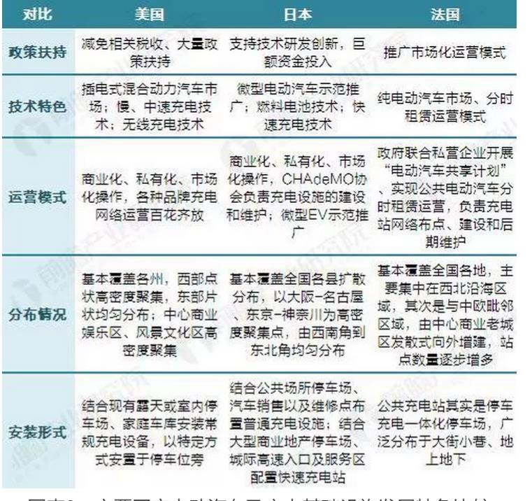 图表2:主要国家电动汽车及充电基础设施发展特色比较