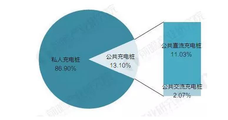 其中,主要以私人充电装为主,2016年全球私人充电桩建设数量占比86.90%,公共充电桩建设数量占全球充电桩数量的13.10%;在公共充电桩中,由 于直流充电桩充电快等优势的影响,公共充电桩多以直流充电桩为主,2016年公共直流充电桩占11.03%,公共交流充电桩占比为2.07%。