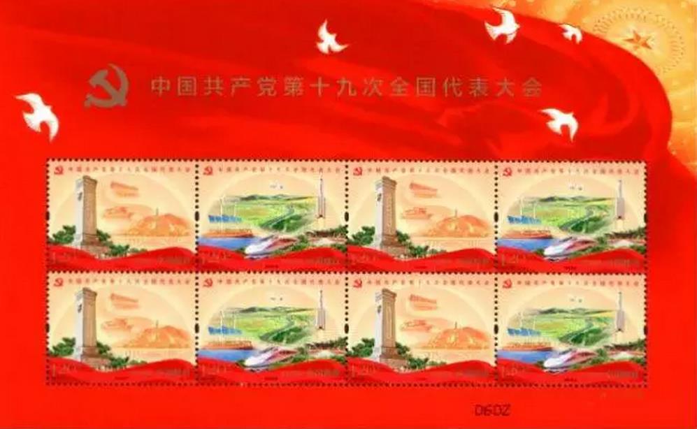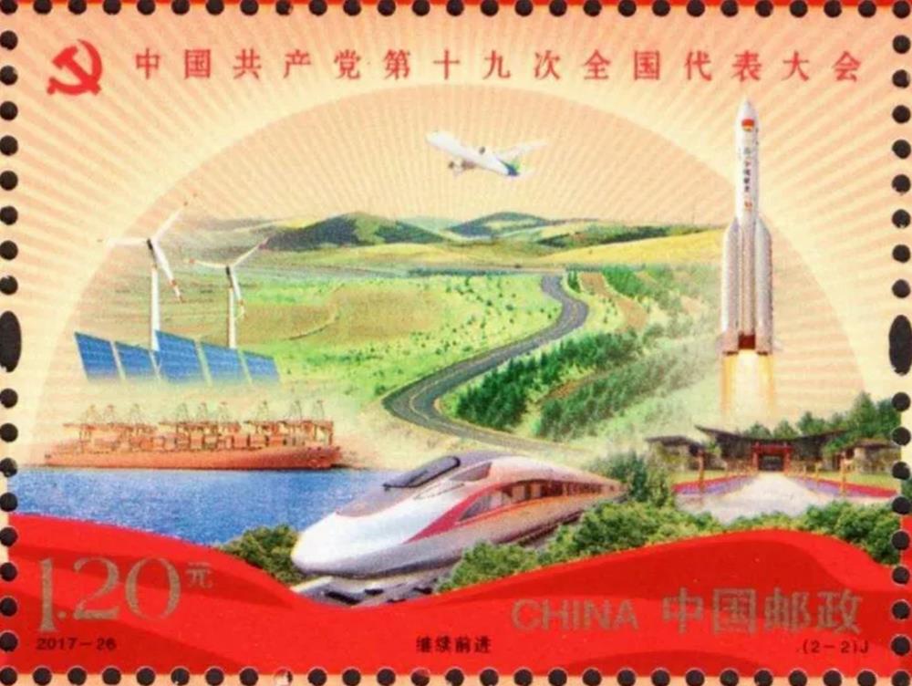 这套主题为“不忘初心、继续前进”的纪念邮票分为两张,光伏、风电与“复兴号”高铁、国产商业C919大飞机、新一代运载火箭一起,展现了十八大以来中国在政治、科技、经济、生态文明等方面取得的辉煌成就。