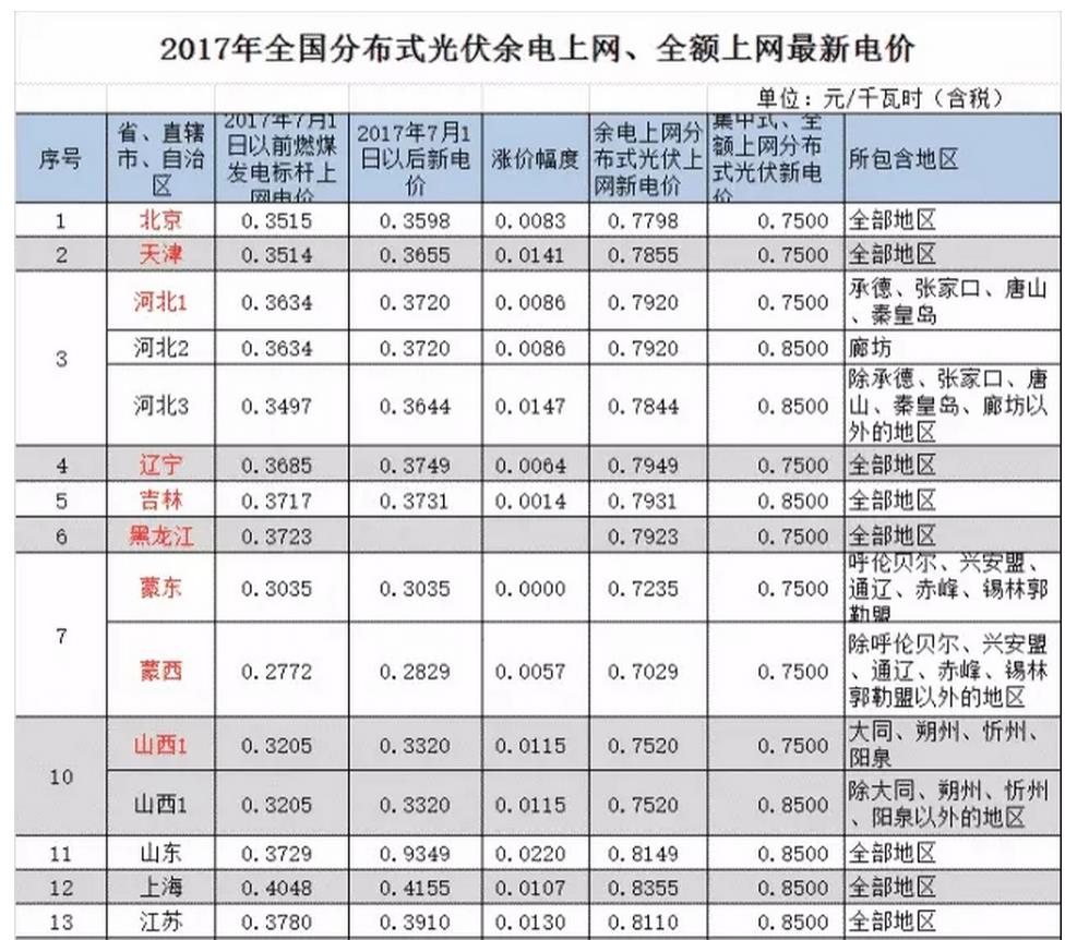 2017年7月份开始,各省市发改委陆续公布了各省的最新燃煤机组标杆上网电价,最新燃煤机组标杆上网电价从2017年7月1日起开始执行。
