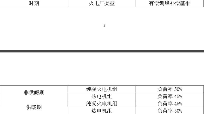 第二十二条 公用火电机组(含供热机组)有偿调峰基准见 下表: