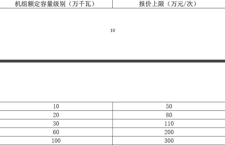 第四十二条 公用火电企业按照机组额定容量对应的应急启停调峰服务报价区间浮动报价,各级别机组的报价上限见下表: