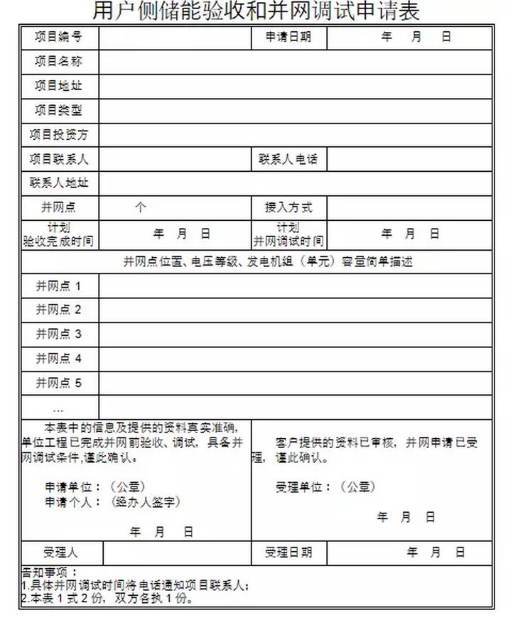 负责提供用户侧储能并网业务咨询、受理接入申请,接受并检查相关支持性文件和资料;负责组织接入现场勘查,将接入系统方案确认单书面答复项目业主并接收业主确认意见;负责受理设计审查,接收并检查相关设计资料;负责组织审查设计资料并出具审查意见,将设计审查意见书书面答复项目业主;负责受理并网验收和并网调试申请,接收并检查相关资料;负责所辖范围内储能系统电能计量装置的安装及维护;负责380(220)伏用户侧储能的用电信息采集装置的安装、调试及维护;参与接入系统方案和设计资料的审查,并网验收和并网调试。负责协调解决并网服务工作中存在的问题;负责用户侧储能充、放电量的抄核管理,日常巡视检查;负责开展用户侧储能并网服务工作的统计分析;负责根据市公司营销部的委托开展用户侧储能有关的工作;负责组织业务管辖范围内380(220)伏用户侧储能的全过程服务。