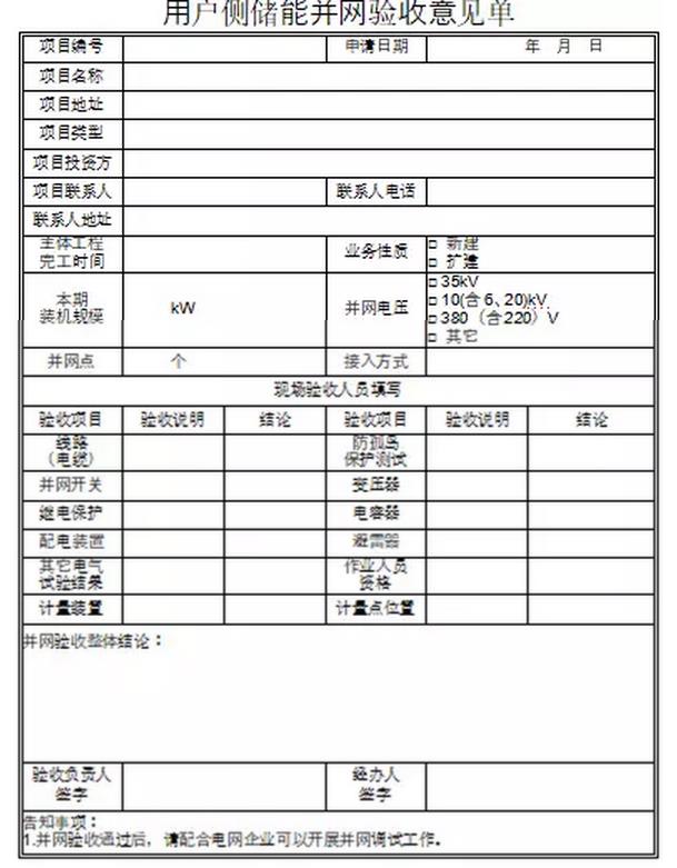 参与用户侧储能接入现场勘查;参与接入系统方案审查;参与设计资料审查;参与并网验收和并网调试。