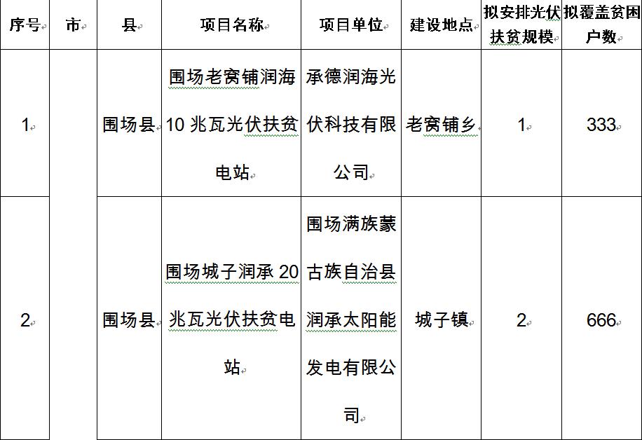 河北省2017年集中式光伏扶贫项目(第二批)安排情况公示