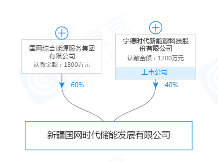近日,宁德时代与国网综合能源服务集团有限公司(简称:国网综能)成立了一家合资公司—新疆国网时代储能发展有限公司(简称:国网时代)。天眼查的信息显示,国网时代双方认缴出资日期为2月29日,注册资金3000万元,经营范围包括储能项目的投资、建设、运营。