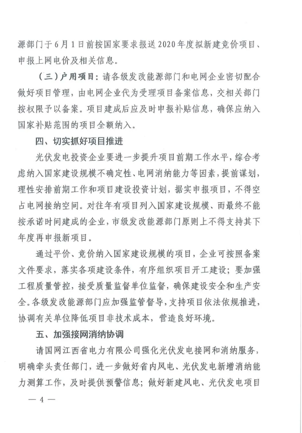 在国家能源局发布2020年,关于光伏行业的管理文件【国发新能能(2020)17号】之后,江西省能源局在近日出台了相应支持光伏行业发展的工作通知,给全国开了个好头,也将带动江西省的光伏行业更好、更快的发展。