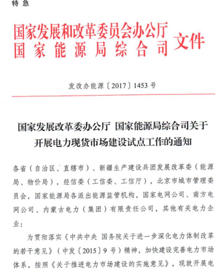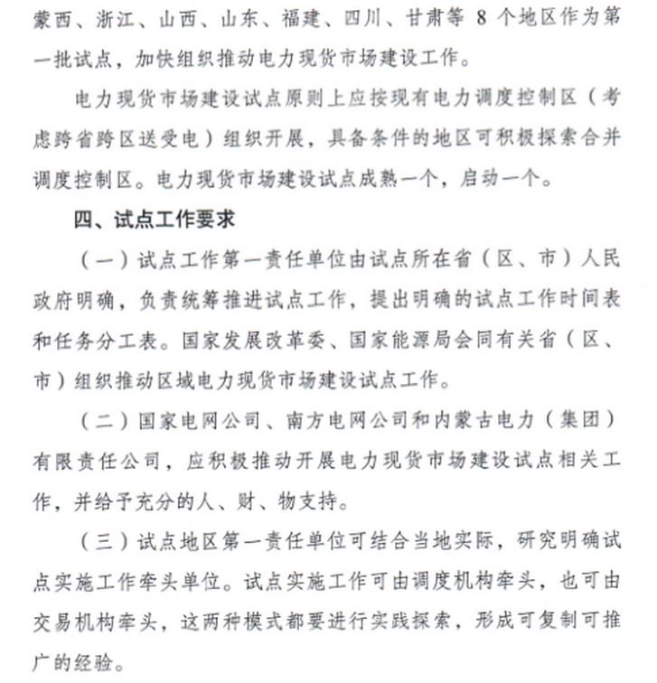 国家发改委、能源局《开展电力现货市场建设试点工作的通知》发布!广东、山西等8个地区成首批试点