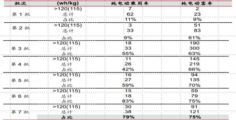 纯电动乘用车:动力电池能量密度不低于90Wh/kg,高于120Wh/kg的,按1.2倍补贴。