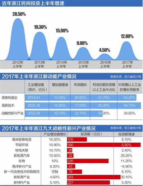 根据浙江省公布的经济半年数据,上半年民间投资增速达12.8%,比去年同期提高8.3个百分点;民间投资在整个固定资产投资中的比重也提高了几个百分点。